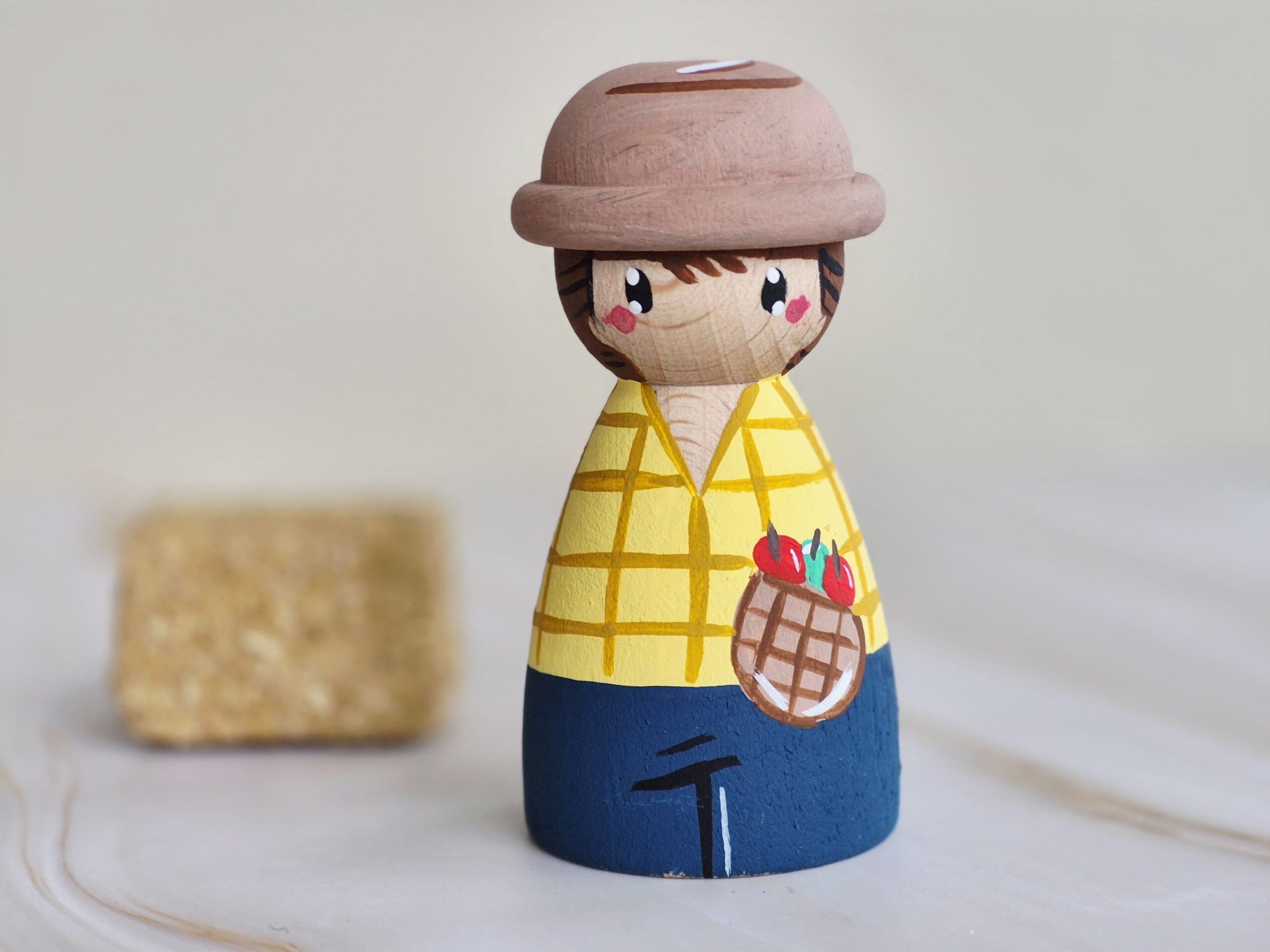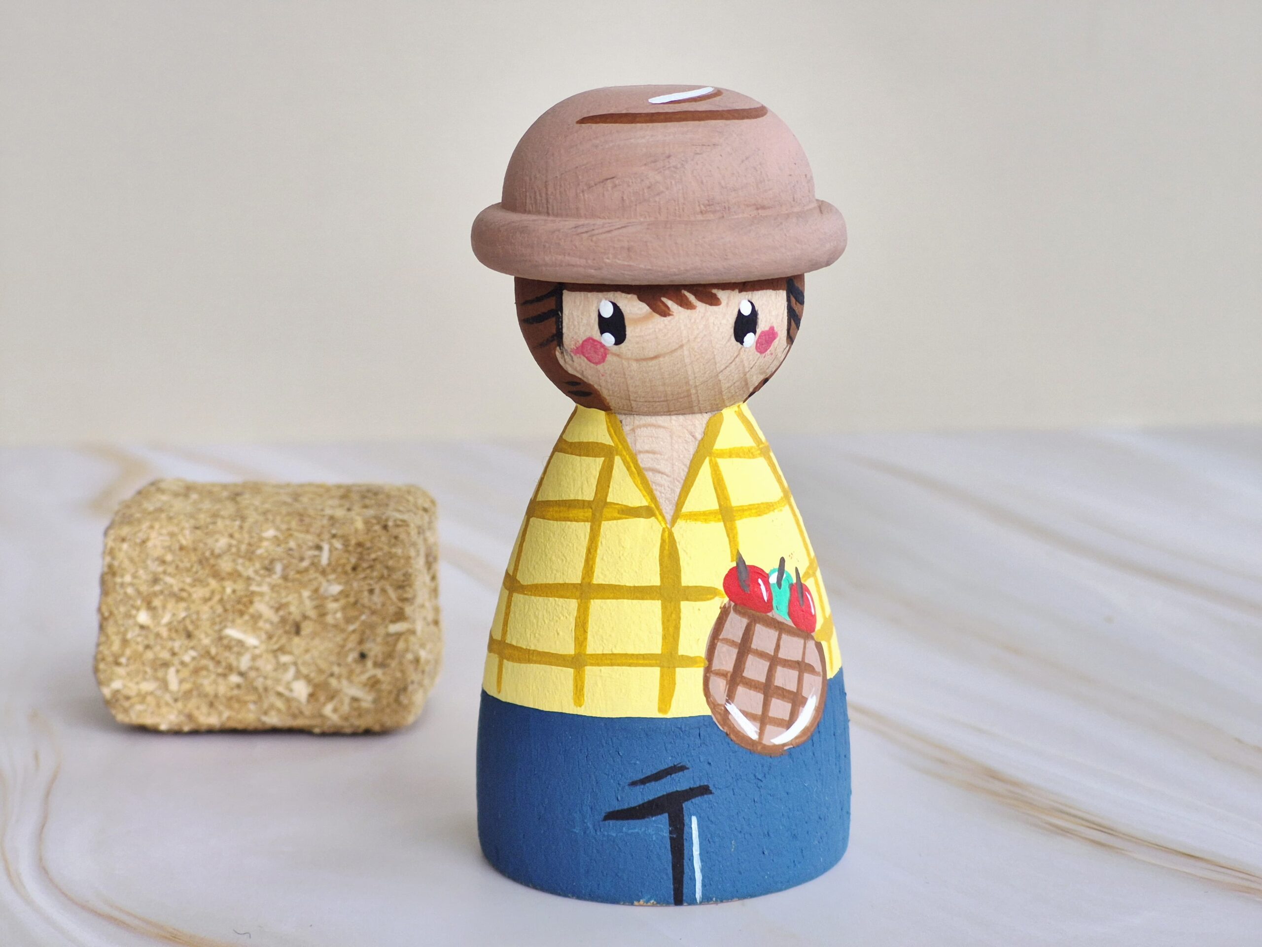 Peg dolls zijn houten speelfiguren die gebruikt kunnen worden bij het fantasiespel. De peg dolls zijn behandeld met vernis waardoor ze niet af kunnen geven en mooi blijven.