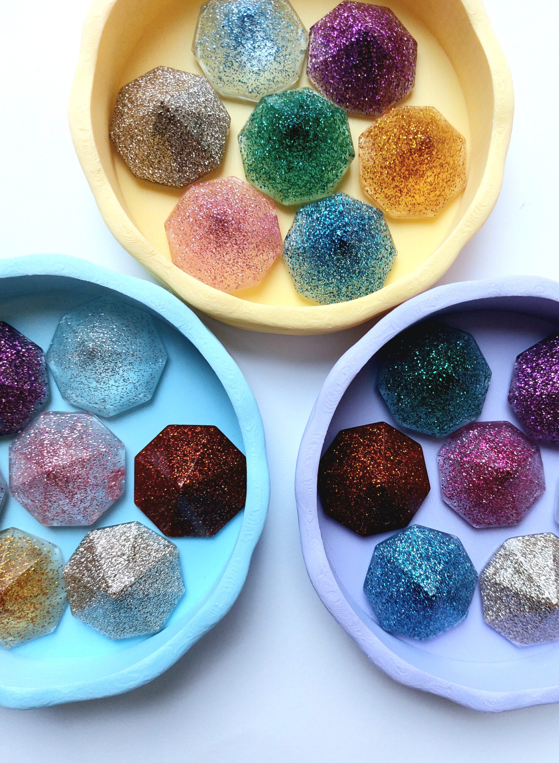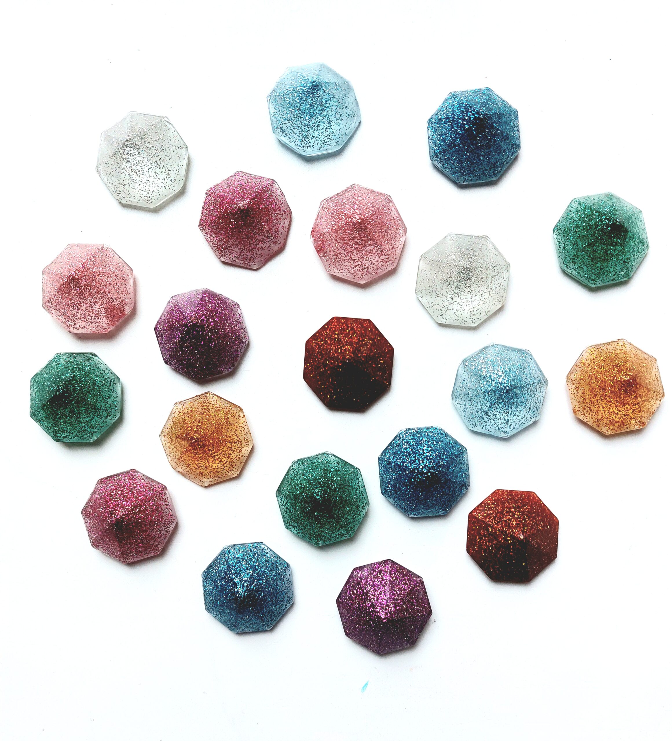 Bestel hier je eigen set met grote speeldiamanten. De diamanten worden met de hand gemaakt van epoxy. Deze set bevat 20 diamanten met 10 verschillende kleuren. De diamanten zijn 2.5 cm in doorsnede. Ze zijn dus groter dan gemiddelde speeldiamanten en daardoor zeer geschikt voor het spel van jonge kinderen. De diamanten zijn hard en daardoor inzetbaar met elk materiaal zoals zand, water en klei.